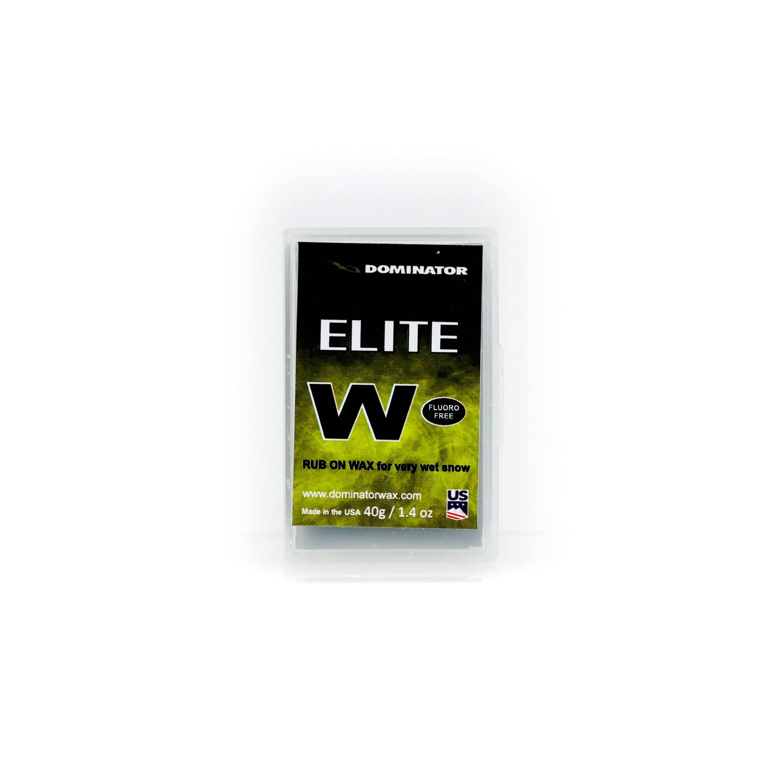 Dominator Elite W rub-on wax is designed specifically to improve glide on very wet snow with warm air temperatures. Elite W can be used on top of Zoom, FFC, Elite, or other waxes to increase performance. Proprietary polymers are used in place of fluorocarbons to increase resistance to friction, durability, and water repellency.